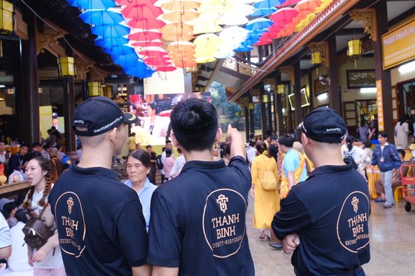 • Hướng dẫn Phật tử: Không chỉ dừng lại ở nhiệm vụ bảo vệ, đội ngũ nhân sự của Thanh Bình cònđảm nhận vai trò hướng dẫn, hỗ trợ Phật tử trong việc tìm kiếm lối đi, khu vực hành lễ và các tiện ích trong khuôn viên chùa. Đội ngũ của chúng tôi được đào tạo kỹ lưỡng về nghiệp vụ giao tiếp, luôn niềm nở và sẵn sàng giúp đỡ.